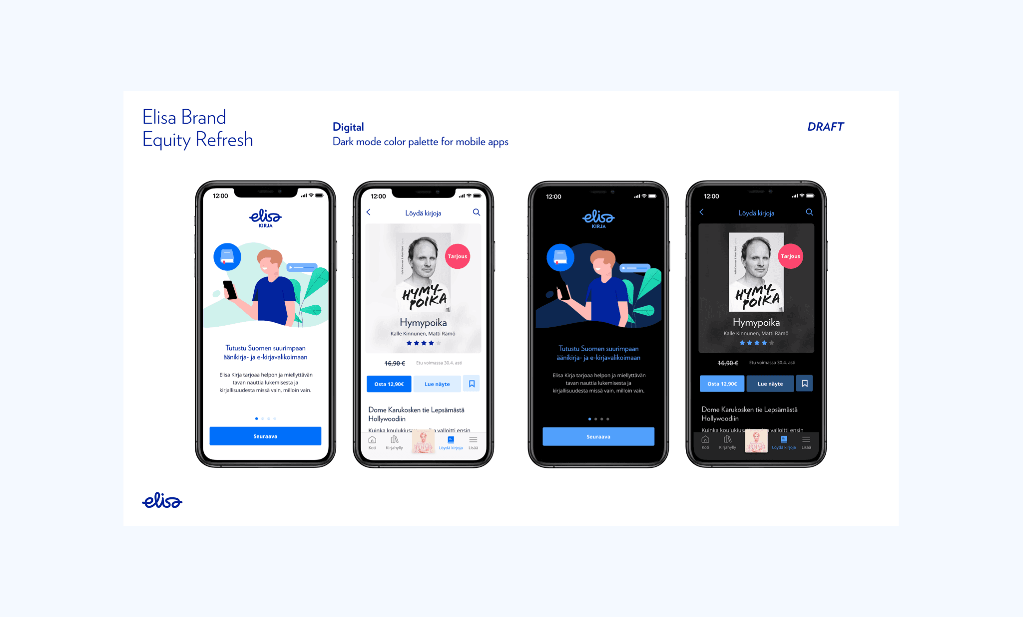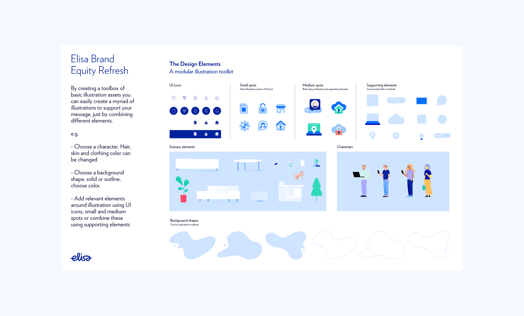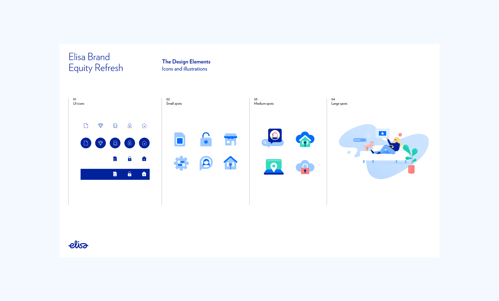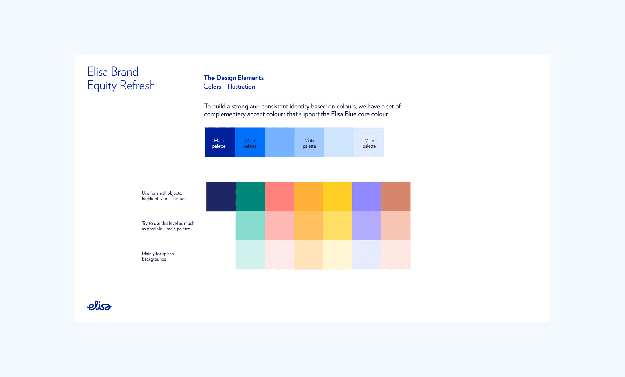 In addition to overseeing the project, I also acted as the art director. Together with our consulting partner, I ensured visual consistency, coherence across touchpoints, and strict alignment with Elisa’s brand identity. The project also included updating and refining the brand’s visual expression to better reflect how it had organically evolved over the years.