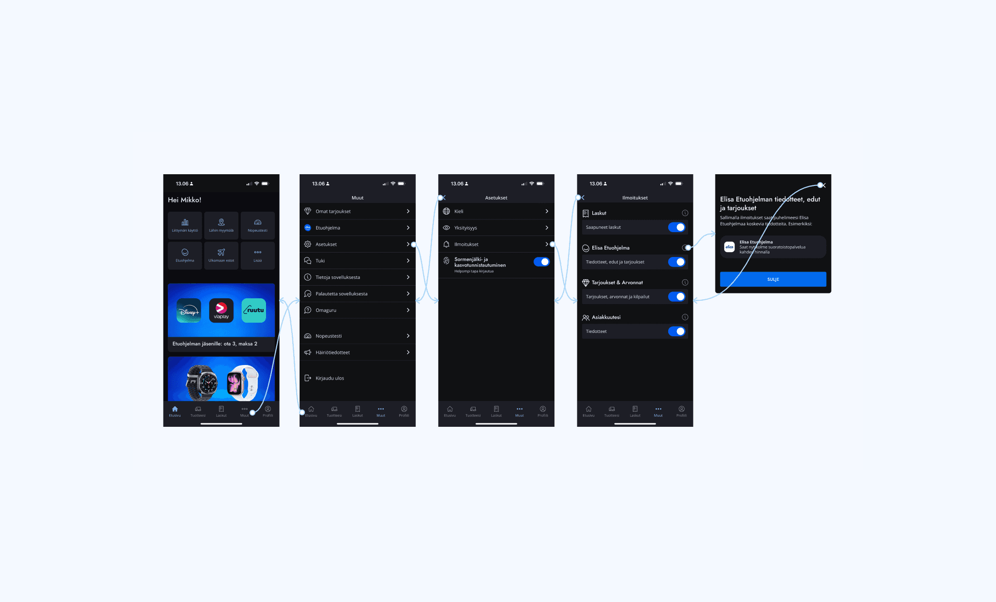 I work in the OmaElisa development team as a UX/UI and strategic product designer, where I combine service design, product thinking, and practical hands-on design work to shape business and customer needs into meaningful, high-impact solutions.